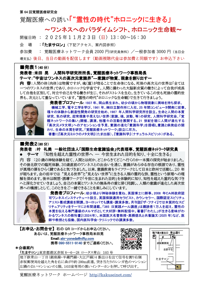 新たな医療のありかたを意識科学から考える